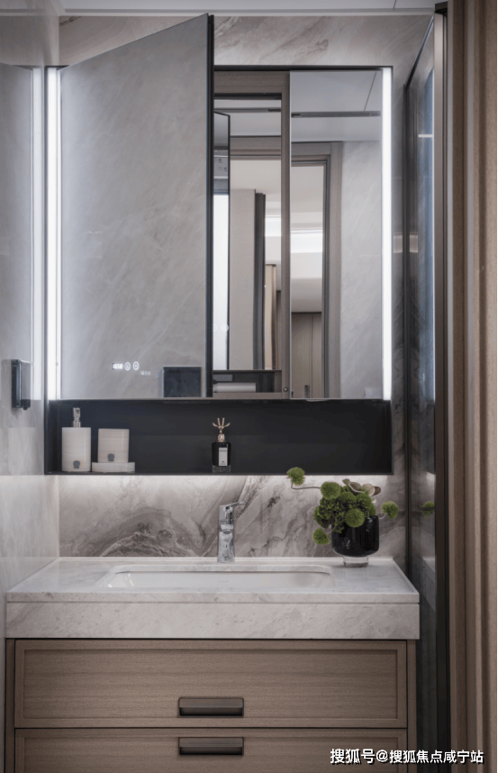 背后主墙面采用岩板设计,经久耐用,内部还收纳细节还预留4孔电源,电动牙刷✿★✿◈、卷发棒等吹风机收纳孔凯时尊龙最新网站✿★✿◈、洗脸巾抽取孔.